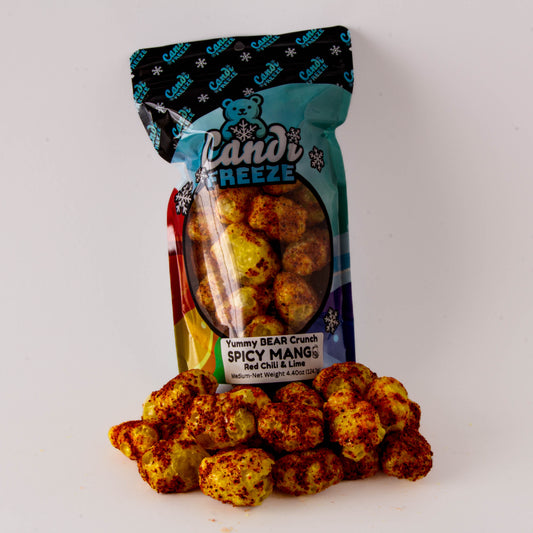 Spicy Mango Yummy Bear Crunch by CandiFreeze – Freeze-Dried, Crispy, Sweet & Spicy Chili Lime Bites – 4.4 oz Resealable Bag